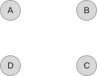 首先我们假设有四个网页,刚开始他们都没有链接到任何其他网页,也没有被其他网页链接,如下图所示。那么所有网页的rank值记为 $PR()=0$,而所有网页连接到其他网页的概率也为0,而总值我们设置为 1 。